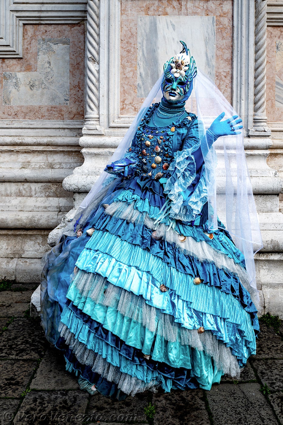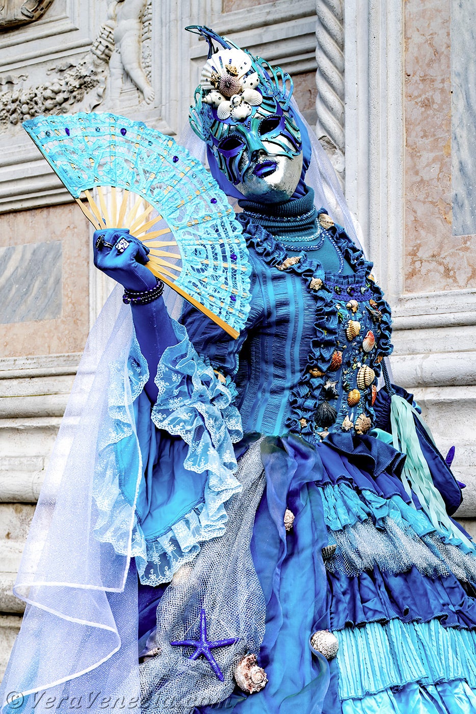 Dopo averci incantato davanti alla chiesa di San Zaccaria, i giovani germogli verdeggianti della primavera e i loro compagni estivi hanno lasciato il posto a una ninfa degli abissi marini.Figlia di Nereo e Doris, nipote di Oceano, Anfitrite, che personifica le onde del mare, ci ha incantati con la sua grazia.
