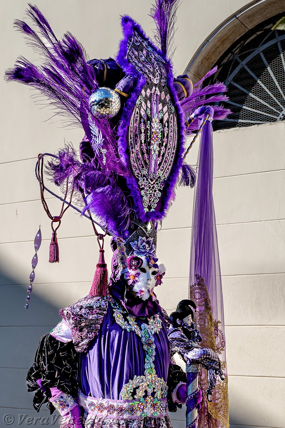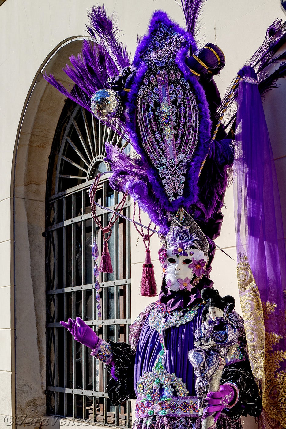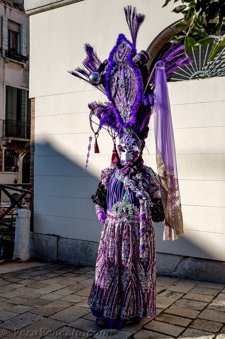 Con un copricapo alto quasi quanto il suo corpo, ricamato con fiori, Gioielli e piume color malva, questo imponente personaggio, armato di un bastone decorato con un giullare reale, ha deliziato gli spettatori del Carnevale di Venezia 2026 in Campo San Lorenzo.Una coppia di pirati vestiti con costumi beige e marroni, semplicemente stupendi, ci ha entusiasmato altrettanto.