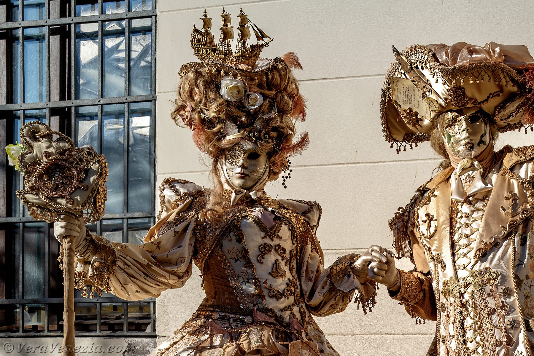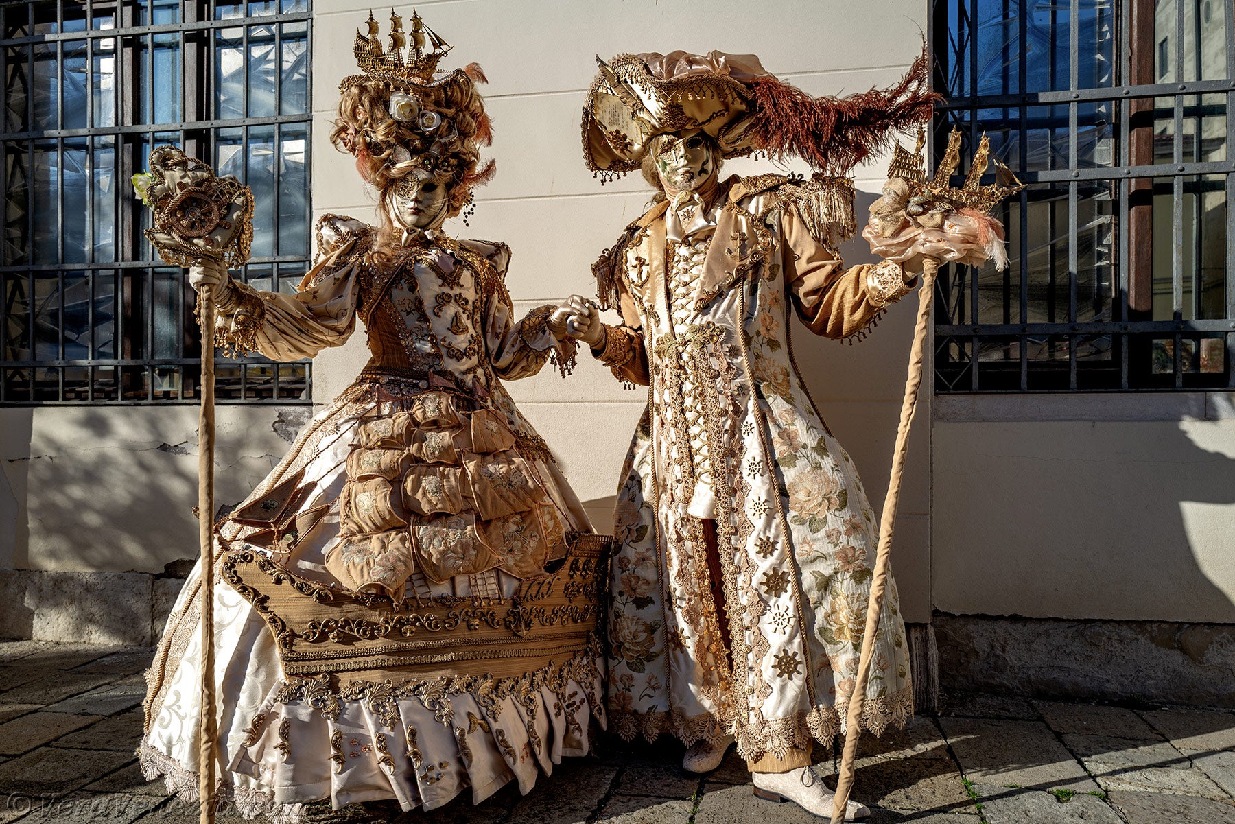 La bellezza dei ricami, l'armonia dei colori e la creatività dei costumi di questi due pirati avrebbero fatto impallidire d'invidia i costumisti dei teatri, ma anche quelli del cinema.L'abito della signora, decorato con una grande nave pirata, aggiungeva il tocco finale a quest'opera d'arte.
